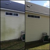 vinylsidingcleaning10 vinylsidingcleaning8Assuming you have the pressure washer ready with the appropriate chemical solution, drop the chemical suction tube into the house wash solution and spray the soap solution on beginning at the bottom and working up towards the roof line with low pressure. Most pressure washers come with a chemical tip for applying soap (black tip). Do not spray too large an area until you feel comfortable with how much area you can spray without letting the soap solution to dry before rinsing. Apply the solution evenly including on windows, doors, etc… Allow the soap solution to dwell on the siding but do not let it dry especially on gutters and windows. On hot days and/or siding, gutters and windows in direct sunlight should be pre-wet and rinsed sooner than cooler, shaded days.